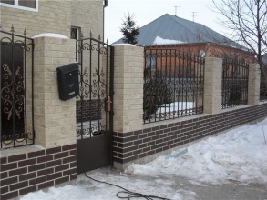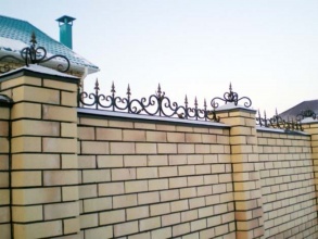 Кирпичный забор с ковкой в Павельце